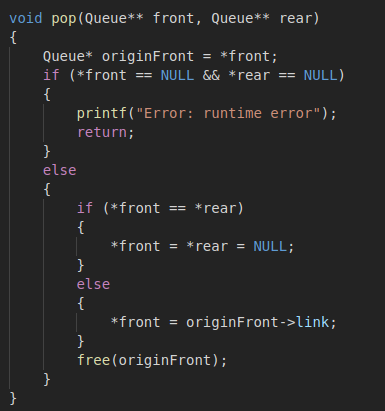 && 기존 front(originFront)에 할당된 메모리 해제