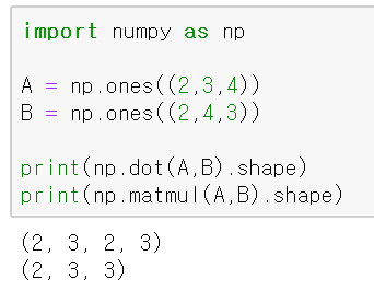 A, B 마지막 두 배열 값으로 내적(나머지 앞의 값들은 같아야 함)