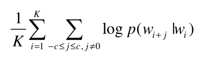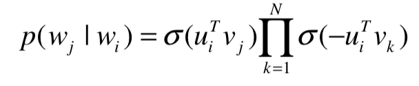 - 그냥 word2vec 중 skip-gram에 softmax 함수를 아래 수식으로 대체해서 negative sampling을 추가시킨 것
