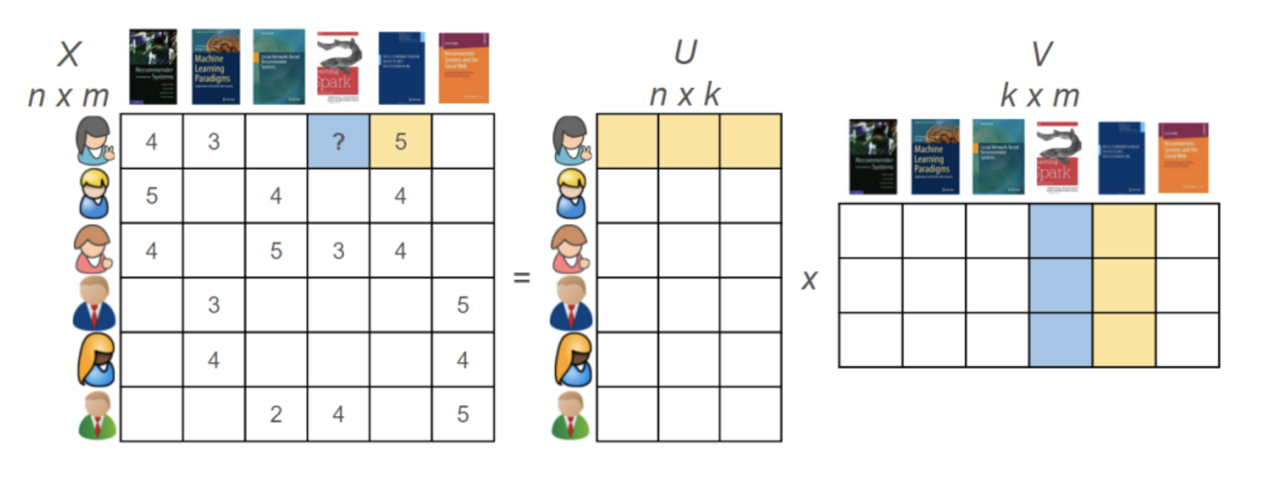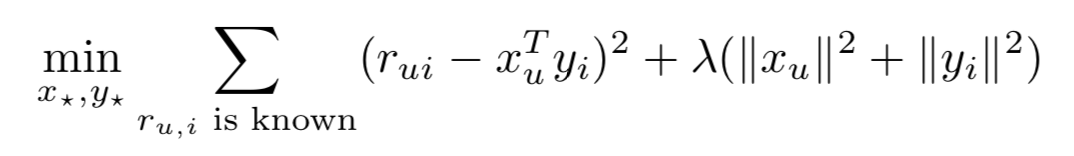 : user feedback으로 얻은 matrix 데이터(r_ui)를 user-factors vector(x_u)와 item-factors vector(y_i)로 나눈 것.