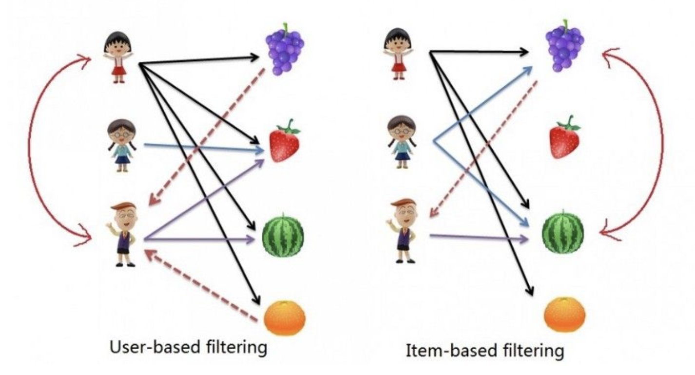 e-commerce의 인기가 높아지면서 좋아할만한 정보를 제공하는게 중요해졌고 맞춤형 추천으로 customer experience를 향상 시켰다. 맞춤형 추천을 위해서는 user와 item을 프로파일링 해서 그 사이의 관계를 파악해야 한다. 그 종류에는 기본적인 두 가지 전략이 있다.