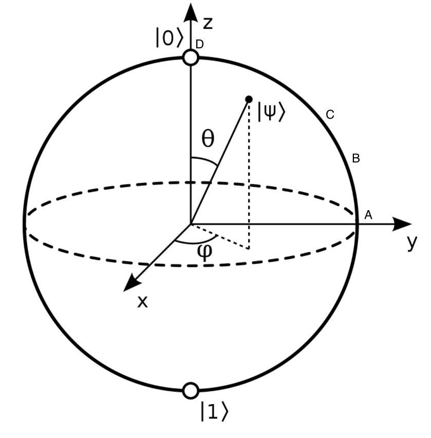 먼저, 구의 각 극을 기저상태 |0>, |1>로 나타낸다.