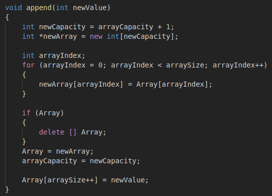 // 용량 M만큼 늘리고 새 배열 할당받기